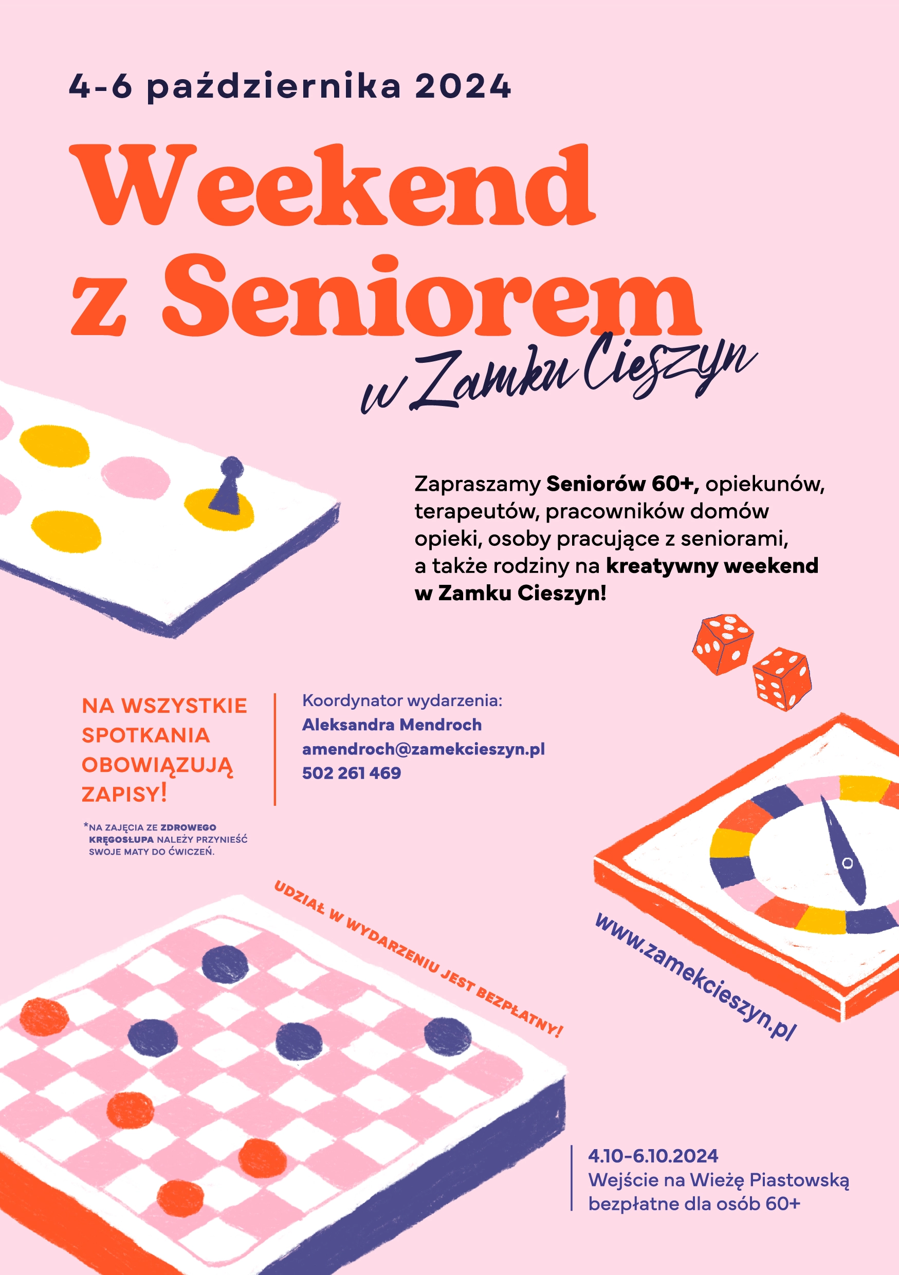 Zapisy u koordynatora imprezy Aleksandry Mendroch drogą mailową lub telefoniczną.